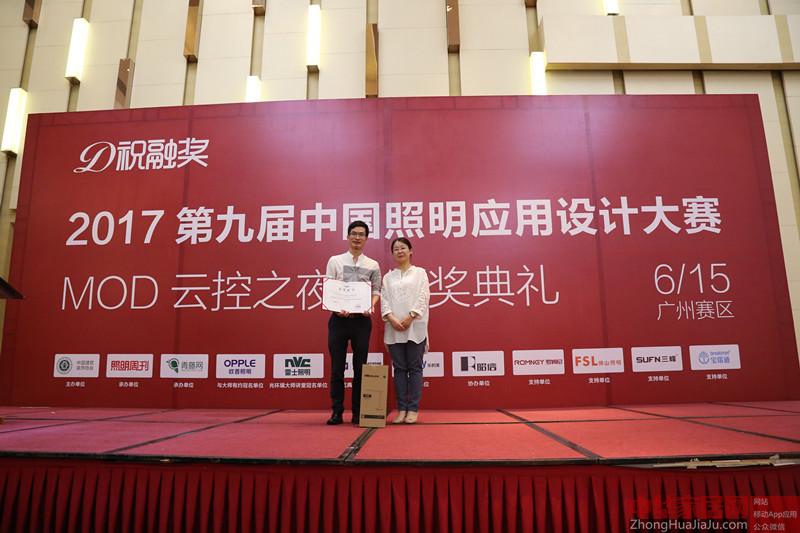 由MOD云控冠名的MOD云控之夜•頒獎典禮,MOD云控照明聯合創始人余從剛致辭對來賓們表示感謝。祝融獎賽事得到廣大設計師的關注和熱情參與,2017年廣州賽區一等獎由廣州厚華設計工程有限公司創始人、總設計師的《成都綠地之窗》榮摘桂冠。