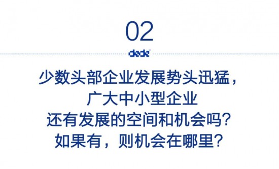這個(gè)問(wèn)題可以分兩個(gè)層次來(lái)看:一是頭部企業(yè)是靠什么發(fā)展起來(lái)的;二是接下里的發(fā)展空間和機(jī)會(huì)之所在。1)頭部企業(yè)是靠什么發(fā)展起來(lái)的首先,要搞清楚這些企業(yè)是如何成為頭部企業(yè)的,然后再搞清楚其發(fā)展勢(shì)頭為什么會(huì)迅猛,其還必定存在著的薄弱環(huán)節(jié)在哪里,從中不難找到突破口。不能簡(jiǎn)單地認(rèn)為自己的企業(yè)已經(jīng)沒(méi)有機(jī)會(huì)了、就此認(rèn)命了。如果是這種心態(tài),還說(shuō)什么呢?有信心不一定能成,因?yàn)檫€需要很多東西來(lái)支撐,但沒(méi)信心是一定不成的,那叫未戰(zhàn)先降。這樣,才能對(duì)照自己曾經(jīng)錯(cuò)失了哪些機(jī)會(huì),檢討自己所走過(guò)的路為什么一直不那么順,問(wèn)題出在哪里,該怎么修整。或許會(huì)發(fā)現(xiàn)其實(shí)我們自己是完全可以做好的,只要認(rèn)真總結(jié)經(jīng)驗(yàn)教訓(xùn),還是有可能成為下一個(gè)贏家的,畢竟時(shí)代在進(jìn)步,頭部企業(yè)不會(huì)一勞永逸。在很大程度上講,頭部企業(yè)的成功不是因?yàn)樗麄冇卸鄥柡Γ蛘吒鼫?zhǔn)確地說(shuō),不是因?yàn)樵谄淦鸩诫A段和發(fā)展初期所擁有的資源和能力比你有多強(qiáng)、產(chǎn)品有多好,或者有多創(chuàng)新,而是在于他們看到了機(jī)會(huì)、搶占了先機(jī),先于其他企業(yè)布局好了市場(chǎng),以及與之相匹配的組織方式有效且高效,以優(yōu)化能力與速度而非提供物的與眾不同取勝的。也就是說(shuō)通過(guò)“跑馬圈地”,這些頭部企業(yè)在市場(chǎng)占有率和產(chǎn)能兩個(gè)方面交替著實(shí)現(xiàn)了規(guī)模化。一旦規(guī)模起來(lái)了,那么資本實(shí)力就會(huì)雄厚,因?yàn)槲镔Y集采的成本就能降低、生產(chǎn)制造系統(tǒng)的邊際成本就能下降、市場(chǎng)觸達(dá)的網(wǎng)點(diǎn)就會(huì)增多,市場(chǎng)機(jī)會(huì)就會(huì)同步增加,品牌影響力就會(huì)加大。手上的牌就多了、硬了,競(jìng)爭(zhēng)力自然就上來(lái)了。我們一直不認(rèn)同一種觀點(diǎn),即很多人經(jīng)常會(huì)說(shuō):“人家小企業(yè)成本低,我們規(guī)模大做不下來(lái)”。這是極為錯(cuò)誤的,如果在紅海市場(chǎng)里你的價(jià)格比不過(guò)小企業(yè),那么只能說(shuō)你的組織系統(tǒng)出了問(wèn)題,管理上的漏洞太多、資源已經(jīng)錯(cuò)配、標(biāo)準(zhǔn)化體系缺失、效率太低、邊際成本設(shè)定錯(cuò)誤,規(guī)模效應(yīng)沒(méi)有得到應(yīng)有的發(fā)揮。不要以“他們可以偷稅漏稅而我們做不到”來(lái)試圖證明自己的觀點(diǎn)正確,那樣的企業(yè)實(shí)際上根本不具備綜合競(jìng)爭(zhēng)力,不可持續(xù)。何況在真正的規(guī)模效應(yīng)面前,那些做法根本不堪一擊,否則那些上市公司稅務(wù)如此規(guī)范,憑什么還能做大做強(qiáng)?所以人不要總是相信自己愿意相信的事。我們絕大多數(shù)企業(yè),眼睛只會(huì)盯著自己每年的營(yíng)收和利潤(rùn),似乎感覺(jué)還不錯(cuò),甚至還有增長(zhǎng),所以往往會(huì)很滿足、小富即安。而頭部企業(yè)考慮問(wèn)題的角度是不同的,他們的視野是全域市場(chǎng),即看到的是市場(chǎng)容量、發(fā)展空間、競(jìng)爭(zhēng)格局和成長(zhǎng)速度。市場(chǎng)的本質(zhì)不在于你自己做得有多好,而是在于你是否比別人更好、你的相對(duì)競(jìng)爭(zhēng)力是否足夠。事實(shí)上,如果企業(yè)自身的發(fā)展速度跟不上市場(chǎng)與行業(yè)整體發(fā)展速度的時(shí)候就意味著落后,意味著自身的市場(chǎng)份額在縮小,意味著正在不知不覺(jué)中被緩慢地?cái)D壓著空間,甚至正在被溫和地淘汰掉,而要命的是你往往還不能自知。企業(yè)靠守是守不住的,只能出擊!一旦踏上創(chuàng)辦企業(yè)的征程,那么你的生命注定是停不下來(lái)的,唯有不斷進(jìn)取方能活著走向未來(lái),正所謂“逆水行舟,不進(jìn)則退”。中國(guó)是一個(gè)發(fā)展中的國(guó)家,在一個(gè)發(fā)展中的產(chǎn)業(yè)和市場(chǎng)環(huán)境下,要獲得成功,能力不是不重要,但機(jī)會(huì)更重要。市場(chǎng)競(jìng)爭(zhēng)與演化有一個(gè)基本規(guī)律,即:成熟市場(chǎng)是完成洗牌后整合的結(jié)果,這就在很大程度上會(huì)呈現(xiàn)出強(qiáng)者恒強(qiáng),而弱者則會(huì)被逐漸擠出紅海主流市場(chǎng),甚至慘遭淘汰的局面。其標(biāo)志是呈現(xiàn)出清晰的兩級(jí)分化格局,即:要么成為紅海市場(chǎng)中的規(guī)模企業(yè),要么在高端市場(chǎng)以全要素提升和差異化競(jìng)爭(zhēng)占據(jù)一席之地。除此之外,傳統(tǒng)的“中間路線”和“東邊不亮西邊亮”的思想將會(huì)越來(lái)越?jīng)]有出路。中間路線不是絕對(duì)無(wú)法生存,但將越來(lái)越艱難。或者,更準(zhǔn)確地說(shuō),即便要做中端市場(chǎng),原來(lái)的玩法都已經(jīng)不能適應(yīng)新的形勢(shì),將難以為繼,必須有新思維。在疫情和經(jīng)濟(jì)低谷期,這種情形會(huì)被進(jìn)一步放大。因?yàn)椋诮?jīng)濟(jì)低谷期,由于各行各業(yè)都受連鎖影響,消費(fèi)者手上的錢有減無(wú)增,很多人工作都難以保障,哪還敢貸款買房?所以在接下來(lái)的紅