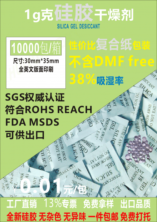 硅膠干燥劑是一種高活性吸附材料,通常是用硅酸鈉和硫酸反應并經老化,酸泡等一系列物理處理過后而制得。硅酸屬于非晶態物質,其化學分子式mSiO2.nH2O,不溶于水和任何溶劑,無毒無味,化學性質穩定,除強堿、氫氟酸外不與任何物質發生反應。各種型號的硅膠因其制造方法不同而形成不同的微孔結構。硅膠的化學組成和物理結構,決定了它具有許多其它同類材料難以取代的特點:吸附性能高、熱穩定性好、化學性質穩定、有較高的機械強度,無毒、無味、無污染。產品的質量標準符合中國化學標準HG/T2765.1-96和中國軍用標準GBJ2714-96。保護密封容器中的貯放物不會發霉或腐蝕生銹,廣范用于鞋帽類、手袋類、家具、玩具、工藝品、禮品、木制品、燈飾、精密儀器、電子、電腦、汽車、藥品食品等行業。