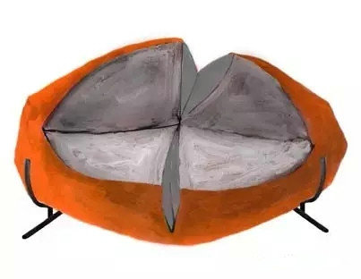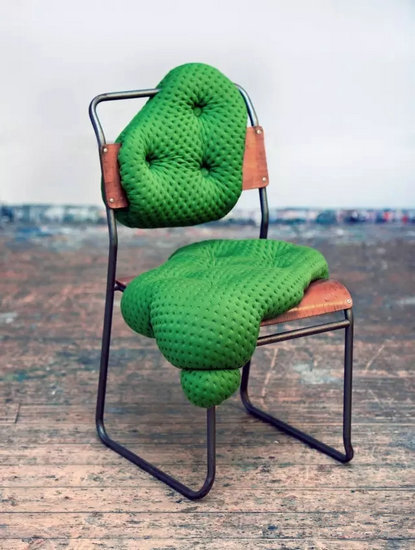 Charlotte坦言,并不是所有的椅子都能夠激發(fā)她的靈感,它們得有一些特殊的地方,有時(shí)候她會在路邊發(fā)現(xiàn)被丟棄的椅子,也許已經(jīng)破舊不堪,但仍留有舊工藝的非凡手工痕跡,吸引著她將復(fù)古椅子們帶回工作室。Charlotte對“撿到”的椅子進(jìn)行細(xì)微的觀察與反復(fù)素描。素描的過程十分重要,從椅子各個(gè)角度的審視素描中,她畫出椅子的形狀,更加精準(zhǔn)地找出椅子的新生可能性,繼而用白棉布墊襯物進(jìn)行基礎(chǔ)打樣裁剪,選擇不同材質(zhì)的布料做最后的修飾,完成不規(guī)則的奇異椅子,契合人體工程學(xué)的同時(shí)舒適得仿佛成為身體的外延。